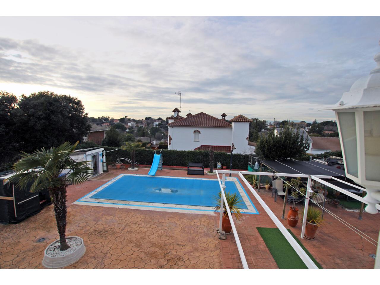 DescripciónInmobiliaria Aneiros comercializa esta magnífica vivienda unifamiliar de 357 m² construidos sobre una parcela de 759 m², edificada en 1994 y ubicada en la urbanización Montecalderón del municipio de El Casar (Guadalajara). Esta urbanización ofrece vigilancia 24 horas, mantenimiento de zonas comunes, pistas de pádel y fútbol, club social y transporte, lo que constituye un entorno ideal para familias que desean seguridad y calidad de vida. Desde Madrid se accede en aproximadamente 35 km, lo que supone alrededor de 35-45 minutos en coche. Desde Guadalajara, la distancia es de unos 29 km, con un tiempo estimado en coche de unos 27-30 minutos.