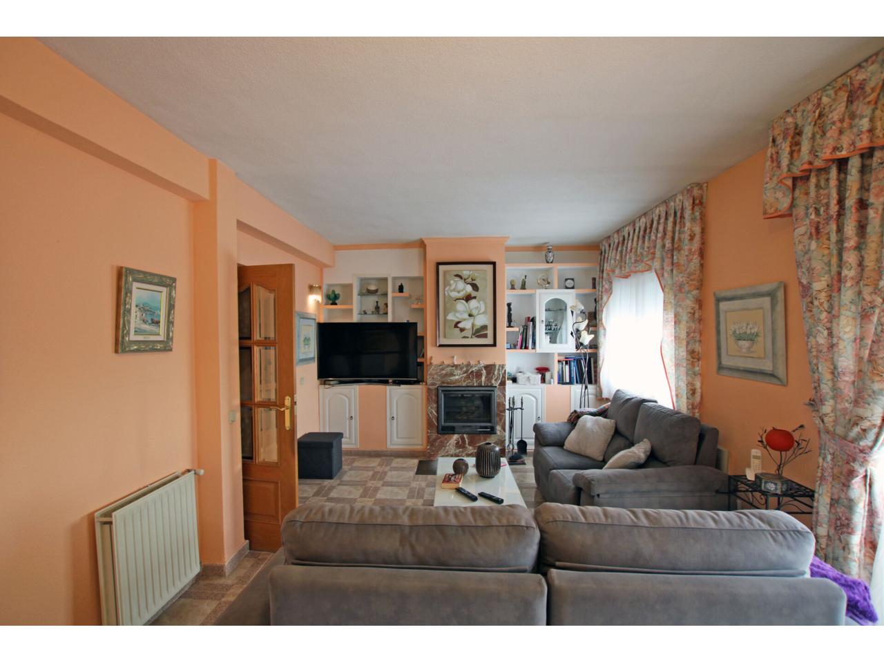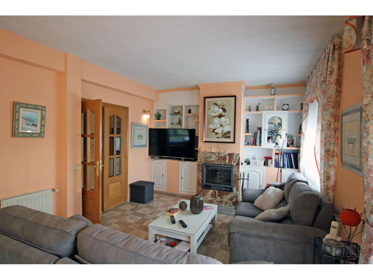 -En la Planta 0 (al nivel de la calle) accedemos al amplio garaje con espacio para dos vehículos grandes. Entrando en la vivienda encontramos una terraza delantera acristalada que da paso al recibidor, donde se ubica la escalera principal. En esta planta hay una cocina independiente de buen tamaño, un salón con chimenea y terraza trasera que dispone de una escalera exterior para el acceso a la parcela, además de un pasillo que conduce a cuatro dormitorios en esta planta baja: dos de los dormitorios tienen acceso directo a un baño común compartido y hay además un baño completo adicional.